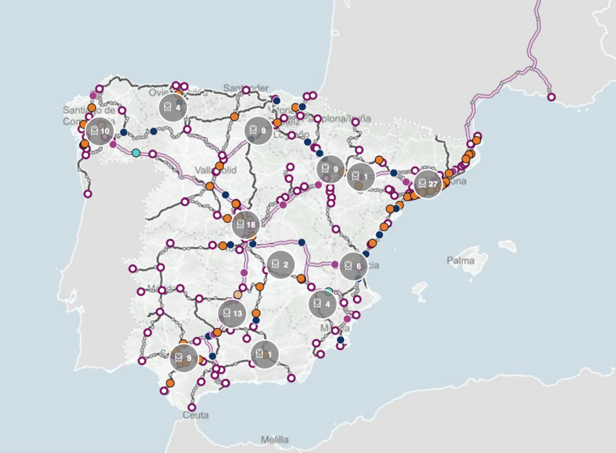 La nueva web permite consultar el estado del mapa completo, con todos los trenes en movimiento en ese instante, seleccionar cada convoy que se desee o elegir una estación para obtener información de la misma.