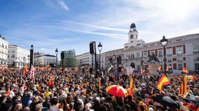 En la Plaza de Colón, que ya parece bombardeada y abollada de manifas como otras plazas parecen bombardeadas de flores […]