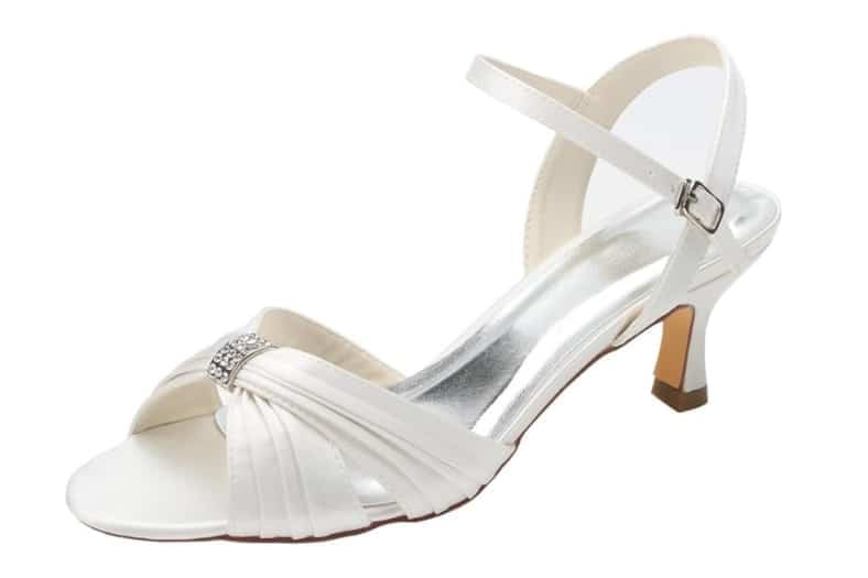 Opta por materiales como piel nacarada o satén marfil, que combinan con la mayoría de looks nupciales. Las tiras finas con cierre ajustable ayudan a sujetar sin presionar, sobre todo si hay hinchazón al final del día.