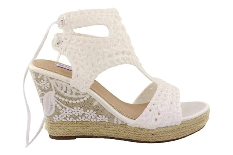 No todas las novias buscan tacón fino y satén brillante. Hay quien prefiere subir al altar con un calzado más natural, ligero y sin renunciar a cierta altura. Estas alpargatas de LARES combinan ese aire boho con una plataforma sólida que alivia la presión del pie durante horas.