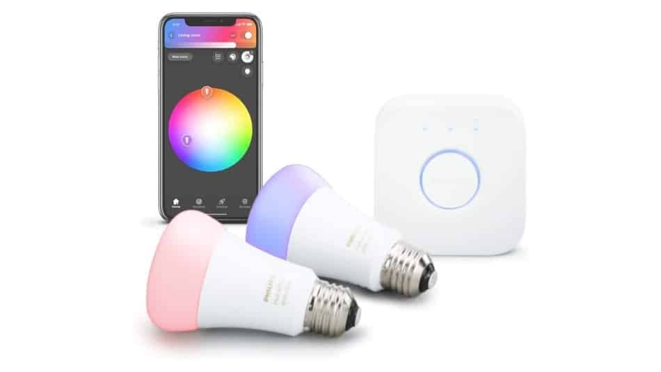 - Kit de inicio con dos bombillas LED A19 + puente Hue