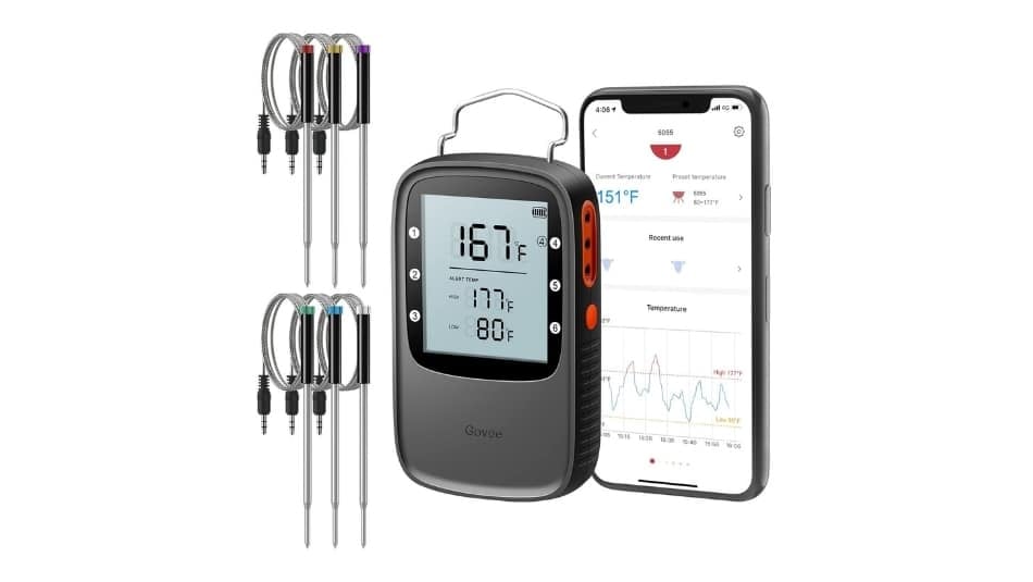 Este modelo es una solución versátil para quienes usan kamado, ahumador o hacen barbacoas complejas. El Inkbird IBT-4XS permite controlar hasta cuatro zonas o piezas de carne a la vez, todo desde el móvil. Su conectividad Bluetooth y batería recargable lo convierten en una opción práctica para cocciones largas y controladas.