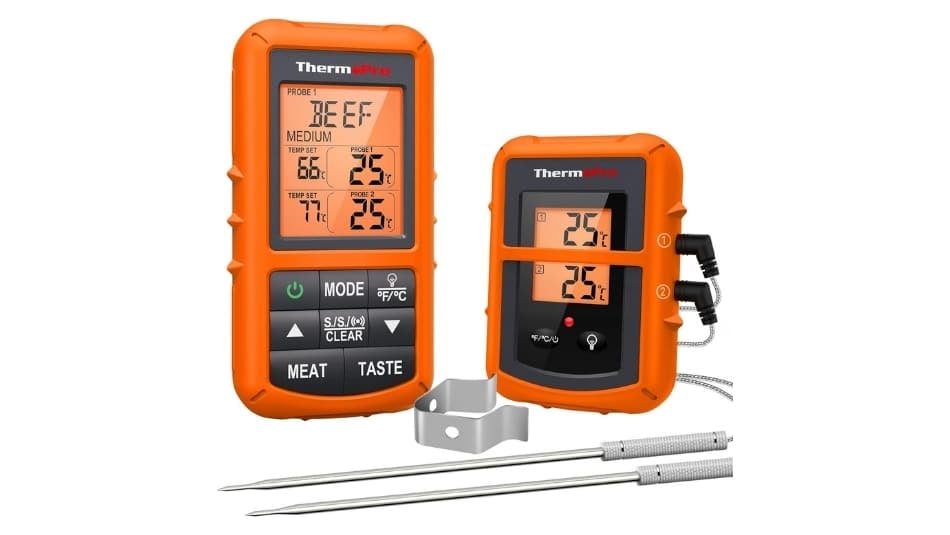 Si sueles cocinar carne a la brasa, al horno o en kamado, este modelo inalámbrico con doble sonda ofrece una experiencia fiable incluso a distancia. El ThermoPro TP20 está diseñado para quienes quieren precisión sin necesidad de apps ni sincronizaciones complicadas.