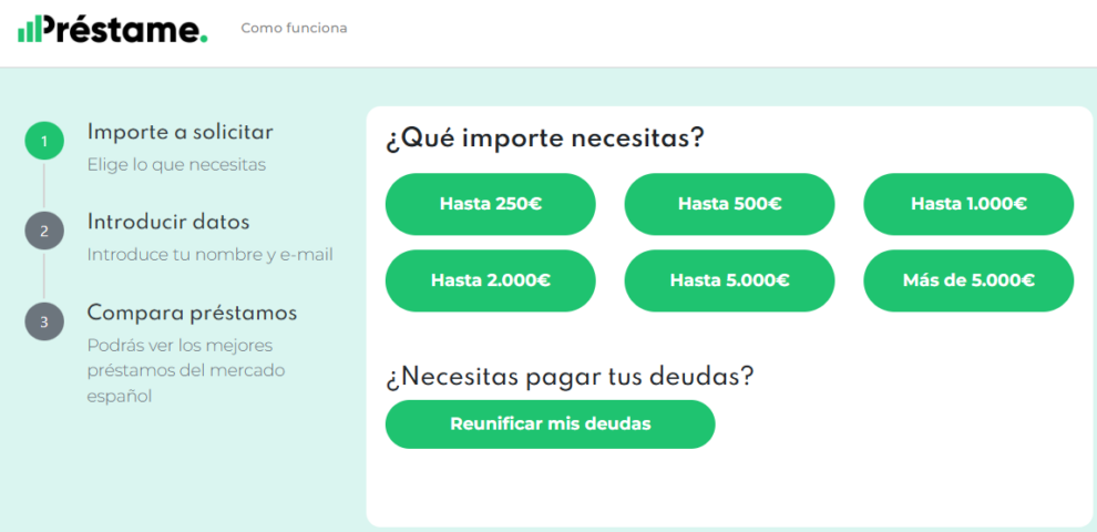 Ya sea para una reforma, comprar coche o moto, pagar estudios, unificar deudas o simplemente tener liquidez, Prestalo permite seleccionar el motivo del préstamo, lo que ayuda a afinar las ofertas disponibles.
