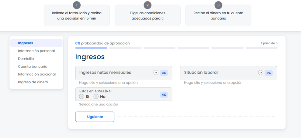 Aunque estés en ASNEF, la plataforma sigue buscando ofertas viables. La alta tasa de aprobación es resultado de una tecnología de emparejamiento financiero en tiempo real, que prioriza la flexibilidad y el contexto del solicitante.