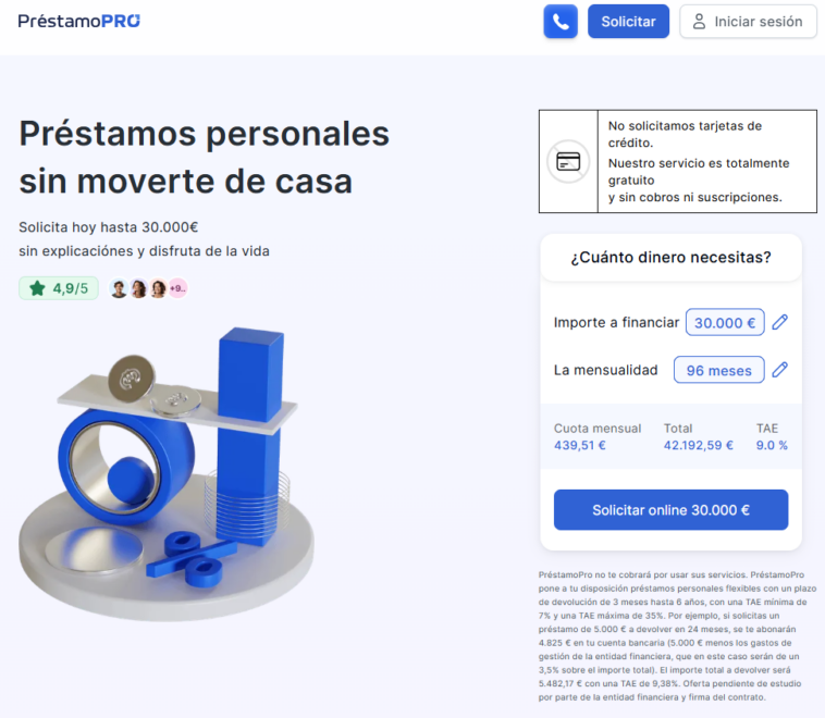 ¿Elegir un préstamo sin marearte entre bancos? Esa es la propuesta de Prestalo. Esta plataforma actúa como intermediario financiero gratuito, enviando tu solicitud a múltiples entidades para conseguirte la mejor oferta personalizada… en menos de 24 horas y sin papeleos.