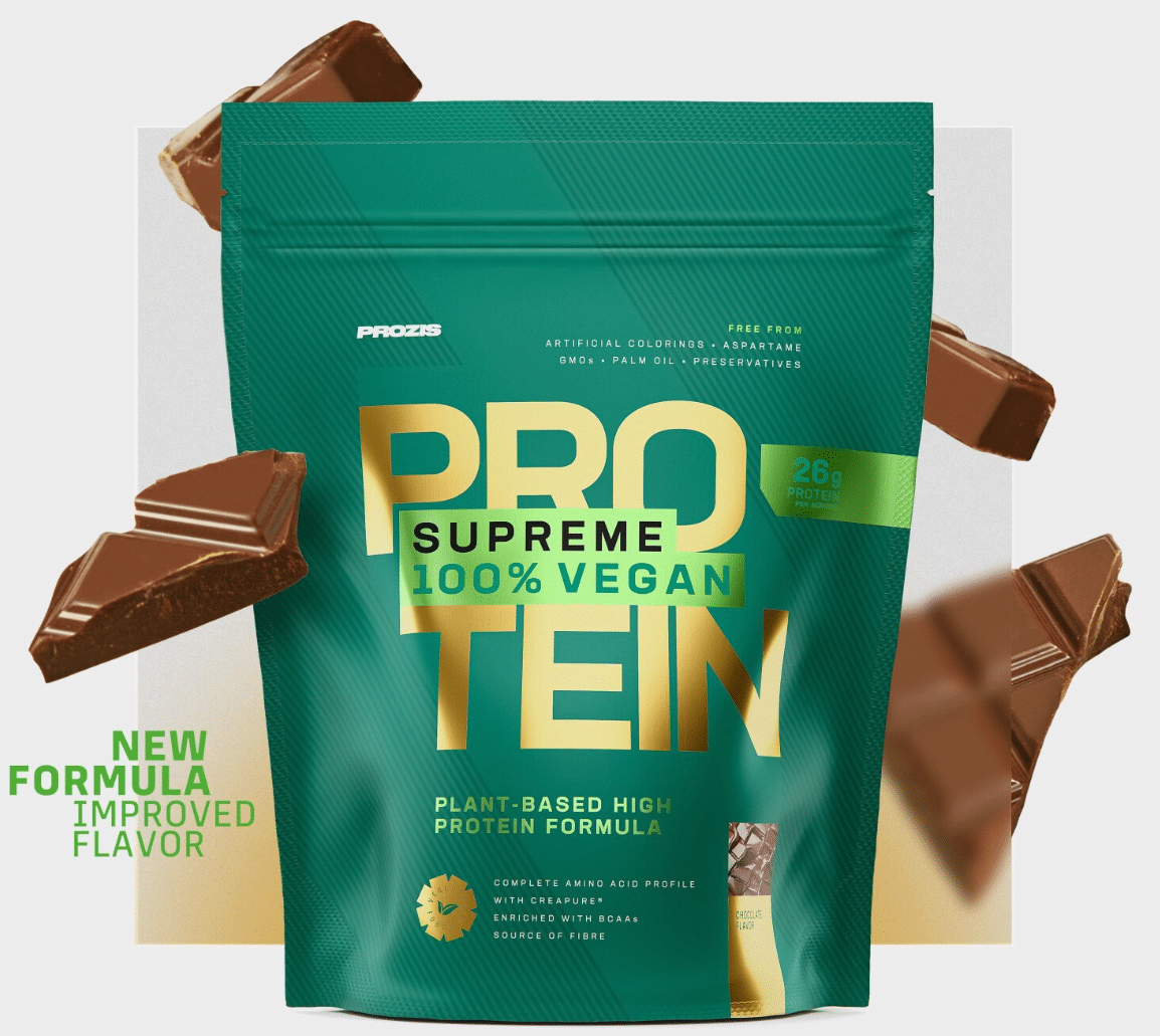 Para quienes siguen una dieta vegetal y no quieren renunciar a un sabor agradable ni a una proteína equilibrada, Prozis 100% Vegan Protein ofrece una de las opciones más completas del mercado. Su versión con Cacao & Avena y Galleta María vegana ha ganado popularidad por su textura cremosa y perfil dulce natural, sin edulcorantes artificiales.