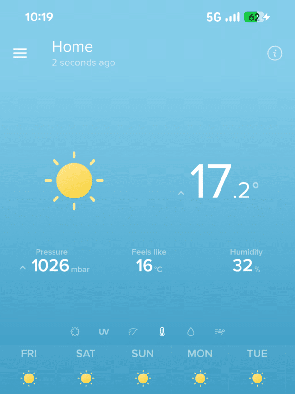 Por ejemplo, podrías vincular escenas según temperatura o calidad del aire. Además, desde la propia red de la app puedes consultar datos complementarios como índices UV o previsiones locales, ampliando la visión más allá de tu propia terraza.