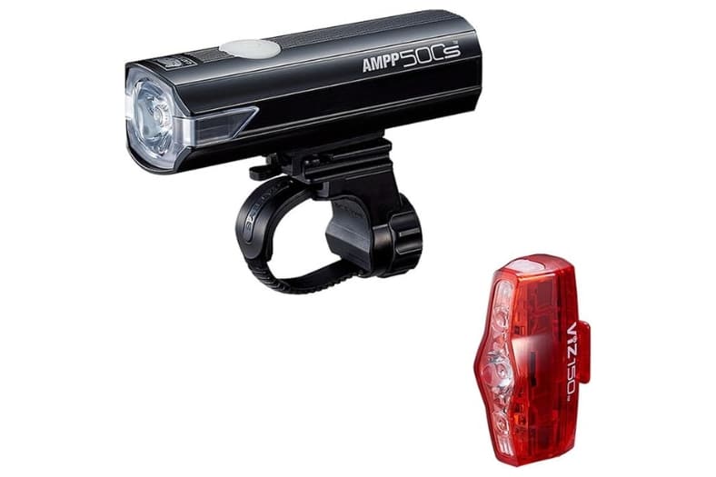 Cateye AMPP + ViZ kits (p. ej. AMPP100/ViZ100, AMPP200/ViZ100, AMPP800/ViZ300) — Mejor kit de marca histórica con delantera y trasera equilibradas