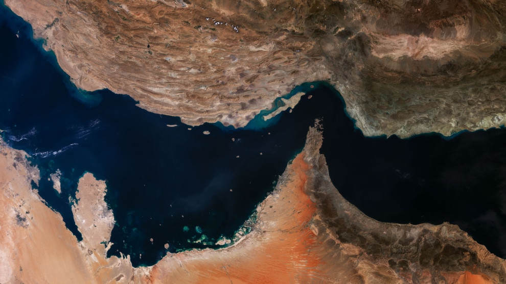 Imagen satelital del Estrecho de Ormuz.