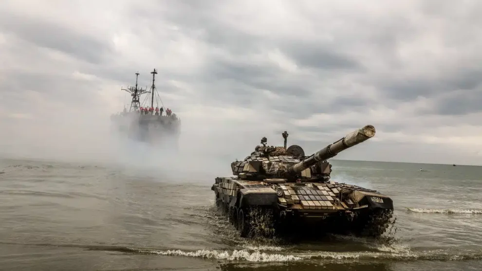 Prácticas de tropas iraníes en el estrecho de Ormuz.
