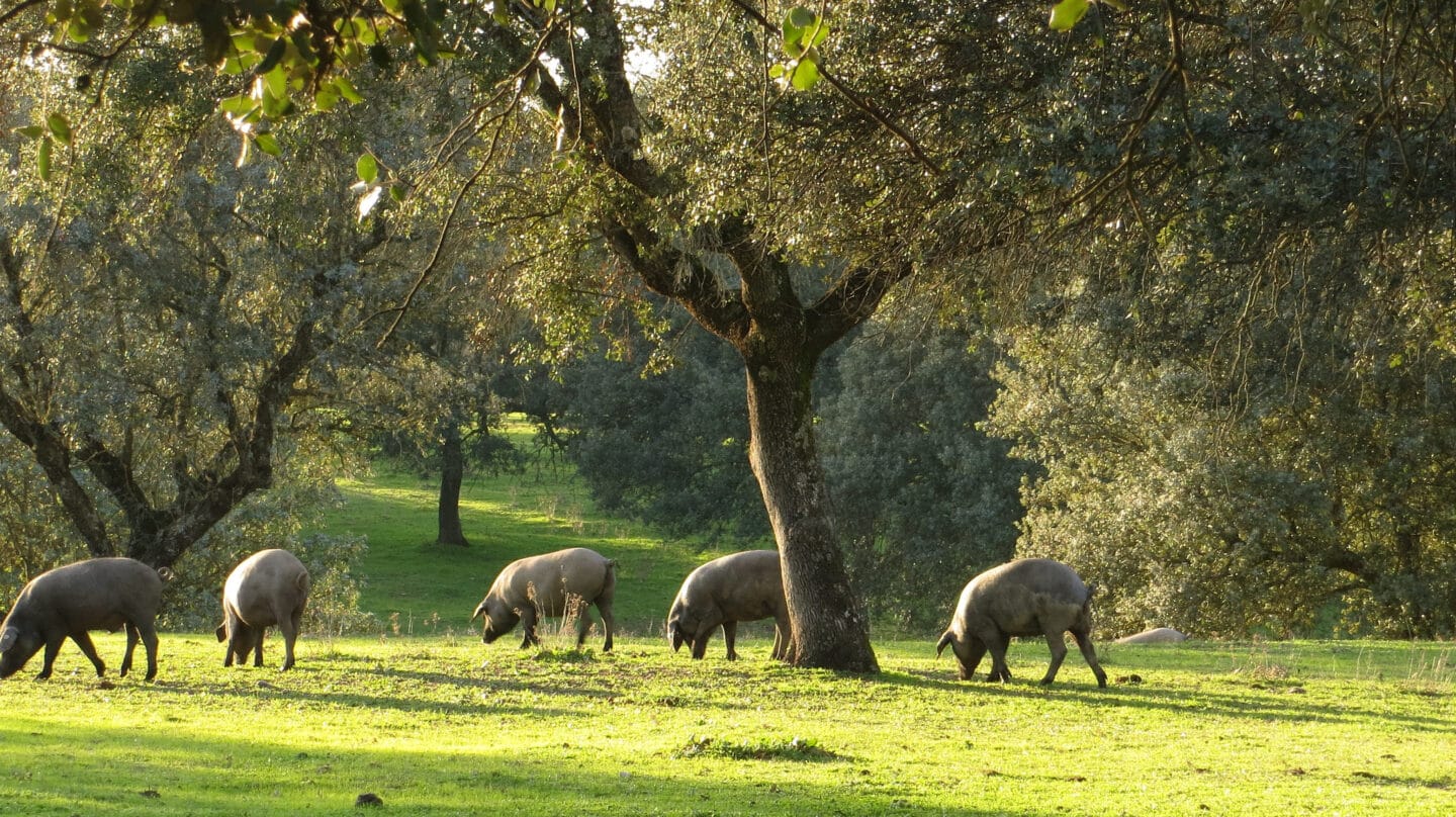 El experto recalca que la importancia en la selección de fincas. "Buscamos aquellas que nos aportan más abundancia y calidad en la bellota, así com hierba, que es fundamental para una buena montanera. Hago visistas periódicas a las explotaciones y asesoro en cada momento, según vayan cambiando las condiciones de la montanera, a las personas que están en las fincas para adaptarnos y hacer el máximo aprovechamiento de los recursos del campo".