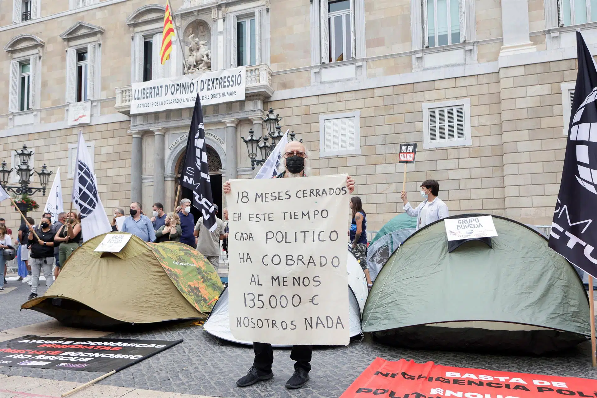 La protesta la ha convocado la plataforma Som Oci Nocturn (Somos Ocio Nocturno) en la plaza Sant Jaume y consiste en una huelga de hambre y acampada indefinida para reivindicar que "el ocio nocturno no es el culpable".
