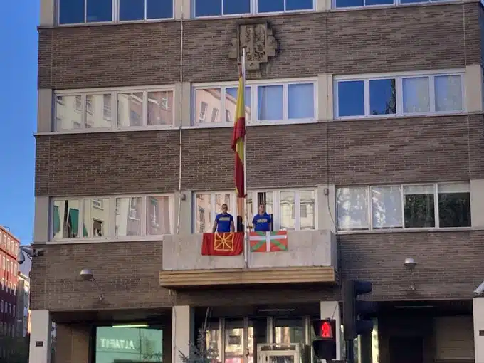 Los dos jóvenes han accedido a la sede militar y en un balcón han desplegado una ikurriña y una bandera navarra mientras en el exterior se congregaban numerosas personas en su apoyo y el edificio era rodeado por numerosos efectivos de la Ertzaintza.