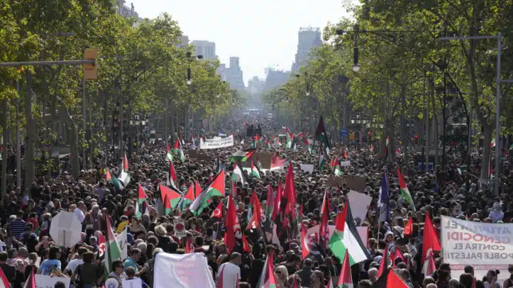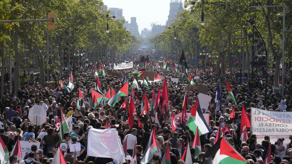 La movilización tiene lugar tres días después de que Israel asaltara la Global Sumud Flotilla y detuviera a sus tripulantes, una acción contestada en la capital catalana con varias manifestaciones de estudiantes y sociedad civil en las últimas 48 horas y de las que se ha derivado una acampada en Drassanes, convertida en centro neurálgico de las protestas en Barcelona.