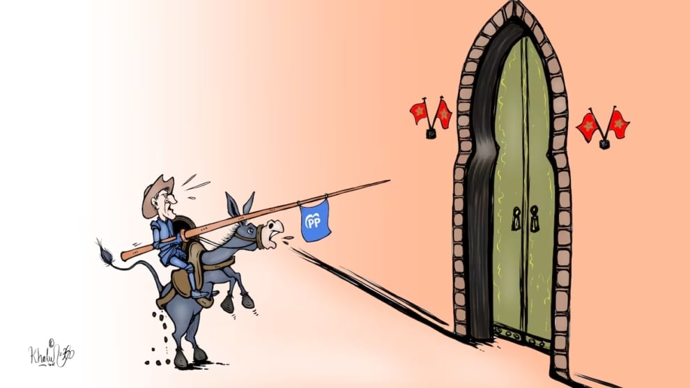 El PP es consciente de esta ira cada vez mayor del establishment marroquí, el que visualiza el majzén -el círculo del rey y el que gobierna “de facto” el país- a través de sus órganos de comunicación. Le360 dedicó ayer su caricatura del día a Feijóo transfigurado en un maltrecho Quijote a lomos de un burro que defeca a las puerta de la fortaleza marroquí. “El PP español: ilusiones pasadas como estrategia contra Marruecos”, lleva por título el dibujo. En privado, fuentes del PP consultadas reconocen la irritación en Rabat: “Están muy picados. La soberbia marroquí es muy irritante. Y nuestra posición es la correcta: no hemos cambiado nada. Lo que pasa es que, como contrasta con el viraje de Sánchez, parece más dura”, deslizan.