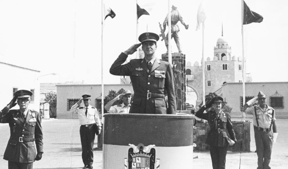 “El general de nuestras fuerzas armadas en el lugar me llama: 'La situación es muy preocupante. Nuestra base está rodeada de minas. Si la multitud se acerca demasiado, habrá cientos de muertos'. Decido acudir al lugar, en este territorio bajo administración española desde 1958. Los ministros intentan disuadirme, pero sé que, en caso de peligro, el jefe de las fuerzas armadas debe estar al lado de sus tropas. Había heredado los plenos poderes de Franco y nadie podía impedirlo de forma concreta. Piloto el avión y llego a la zona de conflicto. Desde el cielo, puedo ver a la multitud de civiles que se dirigen hacia las posiciones españolas. Nada más llegar, me dirijo a las tropas: 'Nos retiraremos del Sáhara, pero de forma ordenada y con dignidad. No porque hayamos sido derrotados, sino porque el ejército español no puede disparar contra una multitud de mujeres indefensas'”, narra el emérito.