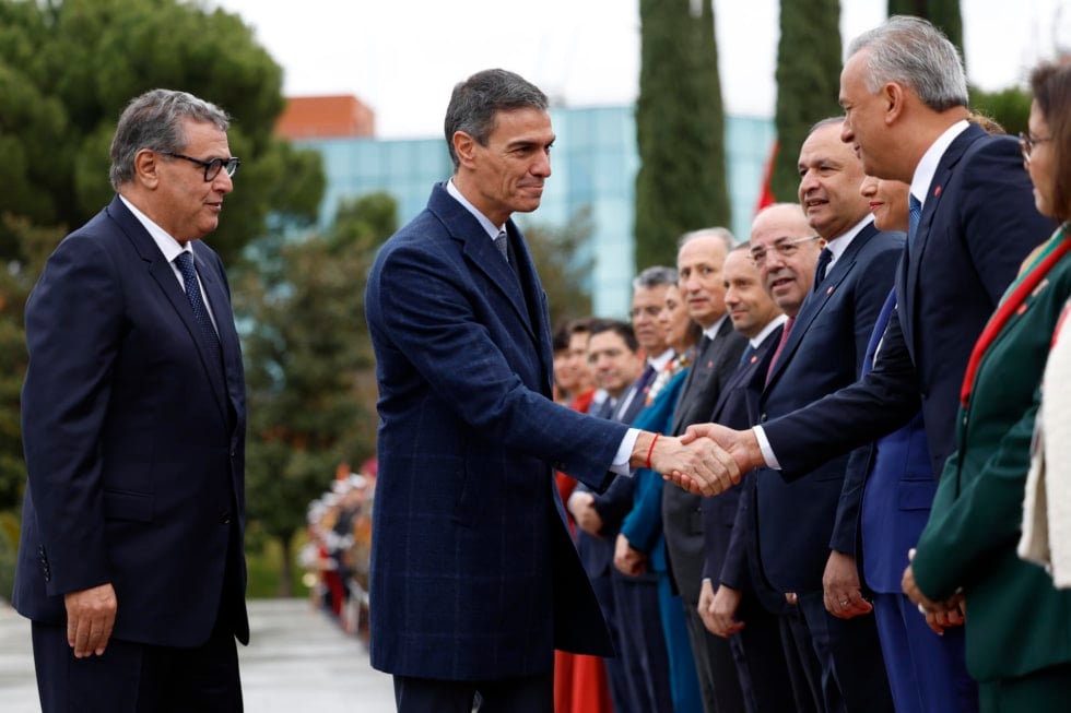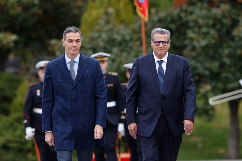 El premier marroquí ha sido recibido con honores militares en el patio de armas del complejo presidencial. El presidente del Gobierno, Pedro Sánchez, ha encabezado el saludo institucional en una jornada marcada por la brevedad y la falta de transparencia. La cumbre hispano-marroquí ha durado menos de tres horas y se ha saldado sin declaraciones públicas posteriores.