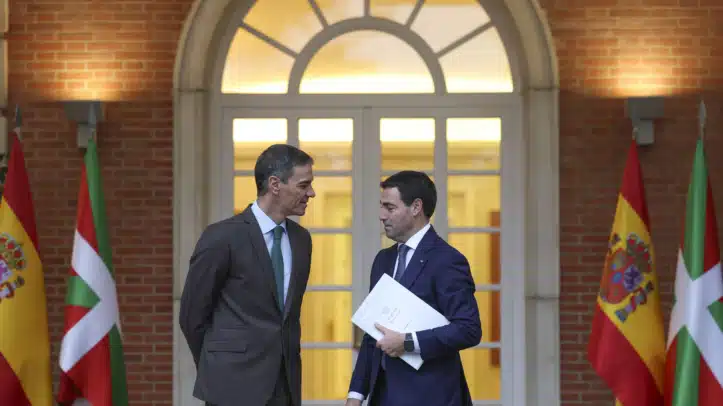 El lehendakari Imanol Pradales y el presidente Pedro Sánchez han vuelto a verse esta tarde en la que es su quinta reunión en apenas año y medio. El tono tenso empleado por el jefe del Ejecutivo vasco semanas atrás, antes del acuerdo de cesión de las últimas cinco transferencias a Euskadi, -entre ellas la gestión de las prestaciones y subsidios por desempleo- hoy no ha estado presente. Más aún, tras su reunión, el lehendakari ha anunciado un compromiso entre ambas partes para cerrar en el plazo de dos meses acuerdos para que Euskadi asuma nuevas competencias en materia migratoria y en gestión aeroportuaria.
