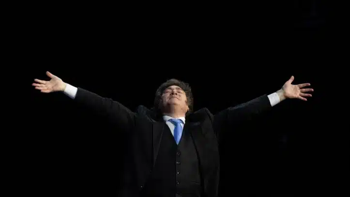 Milei subió al escenario del foro Madrid Economic Forum 2026 al grito de “Viva la libertad, carajo”, a lo que el público respondió coreando insultos hacia Pedro Sánchez.
