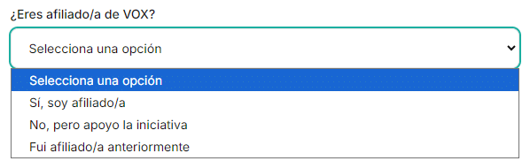 Falta que se aclare si los firmantes son íntegramente militantes o dentro hay otro tipo de personas, dado que la web permite respaldar la iniciativa tanto si se es afiliado del partido de Abascal, como si se fue con anterioridad o simplemente se apoya la iniciativa. Precisamente este asunto se ha usado en Vox para desprestigiar la acción.