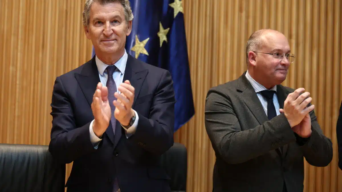Alberto Núñez Feijóo junto a Miguel Tellado antes de la reunión con los parlamentarios | Eduardo Parra / Europa Press