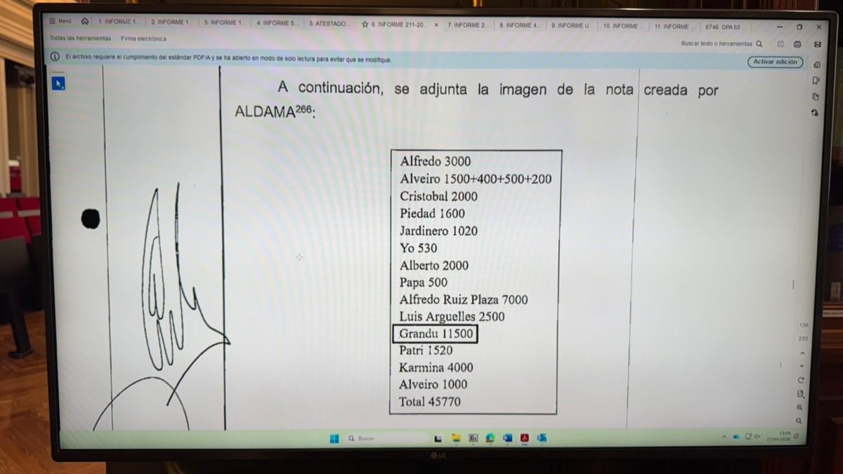 A preguntas del fiscal jefe Anticorrupción, Alejandro Luzón, han situado el inicio de estos pagos el 18 de octubre de 2019, cuando el empresario recogió en su ordenador un desglose de gastos entre los que se encuentra la anotación: "Grandu: 11500". "Esta nota adquiere relevancia porque Aldama se refiere a Koldo como 'Grandullón' de manera reiterada a lo largo del tiempo", ha señalado uno de los testigos.