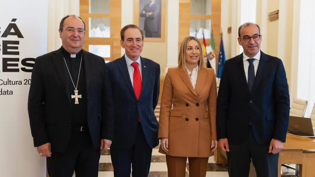 El Protocolo firmado hoy por María Guardiola, presidenta en funciones de la Junta de Extremadura, por Rafael Mateos, alcalde de Cáceres, por Mons. Jesús Pulido Arriero, obispo de la Diócesis de Coria-Cáceres, y por Antonio Huertas, presidente de Fundación Mapfre, permite empezar a concretar el desarrollo de la futura sede de la Red Ibérica de Fundación Mapfre que se ubicará, inicialmente, en el conjunto arquitectónico de la plaza de San Jorge de Cáceres.