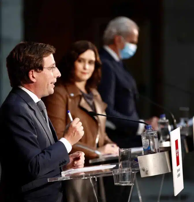 Ayuso, Aguado, Almeida, Villacís y todo el gabinete de crisis de Madrid permanece reunido para buscar alternativa que evite el cierre definitivo por parte del Gobierno