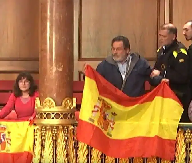 Colau expulsa a un hombre que interrumpió el Pleno con una bandera de España