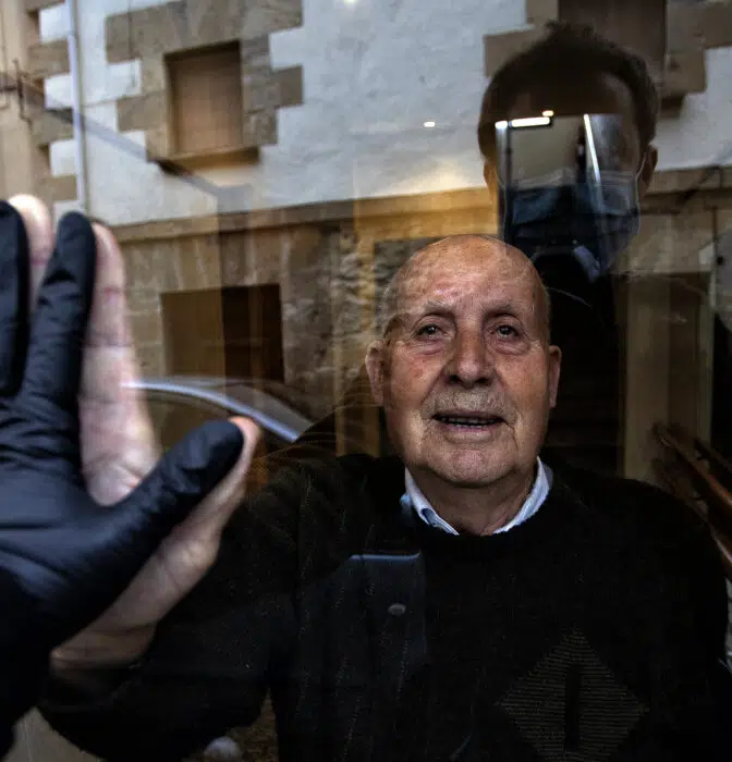1 de abril de 2020. Miguel y su nieto Unai se saludan presionando las manos sobre un cristal. Les separa […]