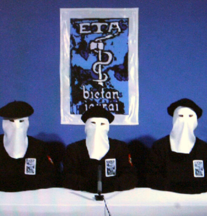 Euskadi Ta Askatasuna (ETA) es una organización terrorista fundada el 31 de julio de 1959. Nacida tras la escisión de una parte de las juventudes del PNV, que consideraban que se debía elevar la presión contra la opresión de la dictadura franquista contra la identidad y los símbolos vascos, durante su etapa de violencia armada provocó 879 muertos y decenas de miles de heridos. La organización anunció el 11 de octubre de 2011 el cese de su actividad armada y escenificó su desarme el 8 de abril de 2007. ETA aún no ha anunciado su disolución.