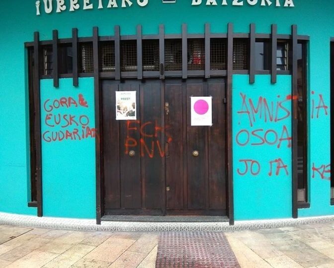 La formación ha sido atacada de nuevo en apoyo al etarra Oier Gómez, fallecido el viernes en Bayona (Francia) tras ser excarcelado en 2017 por padecer una grave enfermedad.
