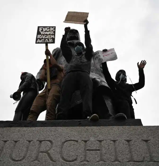 El primer ministro británico dice que es "absurdo y vergonzoso" que haya que proteger la estatua de Churchill, el líder del antifascismo