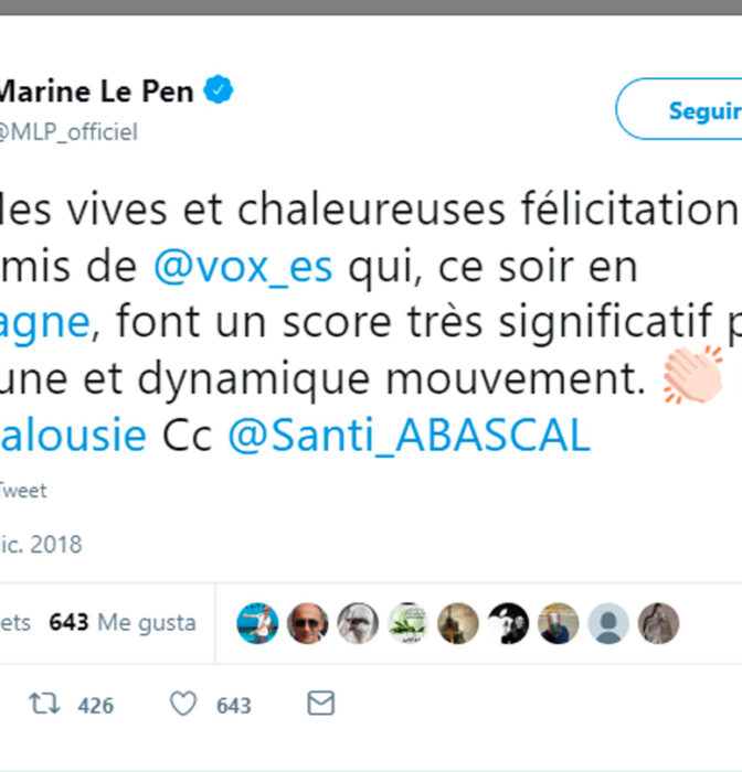 La líder de Agrupación Nacional francesa, Marine Le Pen, ha felicitado este lunes a Vox por su irrupción en el […]