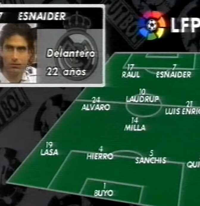 Los dorsales fijos se instauraron en España en 1995. Y el primer '7' oficial del Real Madrid no fue Raúl González, sino su compañero Juan Eduardo Esnáider