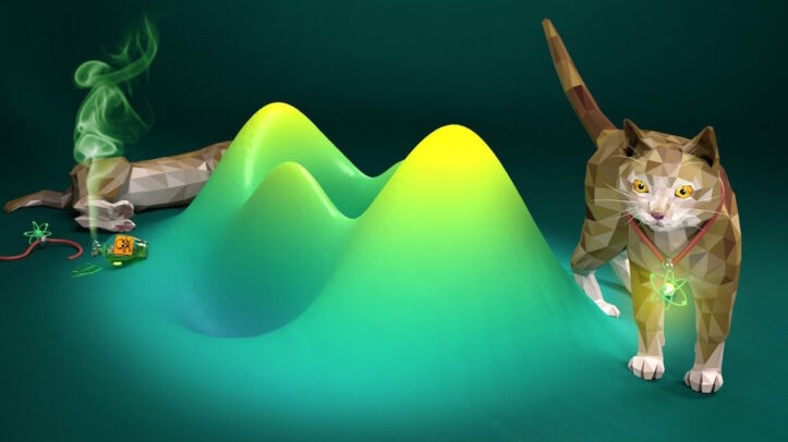 En 1935, Erwin Schrödinger planteó un experimento mental absurdo. Una caja opaca con una botella de veneno, un martillo que se activa con una partícula radiactiva y un gato en su interior. En mecánica cuántica, decimos que hay partículas que pueden estar en dos estados a la vez. Algo así como moviéndose en dos direcciones distintas al mismo tiempo. Un estado o tipo de movimiento golpearía el martillo, liberando el veneno e intoxicando al gato dentro de la caja. El otro no lo desataría. Eso implica algo verdaderamente loco: hay un momento en que el gato está vivo y muerto a la vez. Sin embargo, sabemos que en el mundo cuántico en el momento que un observador echa un vistazo, el sistema colapsa: la partícula 'elige' de golpe estar en uno de los dos estados, implicando que el gato viva o muera en el momento en que abrimos la caja y observemos | Vídeo: M.V.