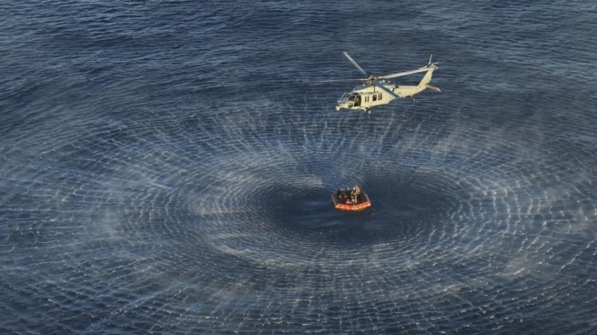 RescateTras el amerizaje controlado, unidades de la Marina estadounidense se acercaron para asegurar la cápsula y realizar las primeras comprobaciones médicas