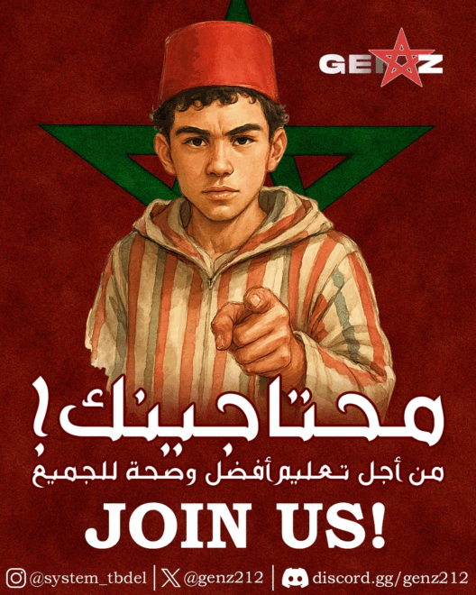 Durante sábado y domingo miles de jóvenes marroquíes salieron a las calles en al menos 11 ciudades -entre ellas, Casablanca, Rabat, Marrakech, Agadir o Tánger- para denunciar lo que consideran prioridades equivocadas del gobierno, como la inversión en estadios para eventos deportivos internacionales frente al deterioro de servicios públicos como salud y educación. Los manifestantes criticaron que el Estado prioriza la construcción o renovación de estadios para la Copa Mundial 2030 mientras el sistema sanitario y educativo padecen carencias. La protesta fue organizada de modo descentralizado por colectivos juveniles como Gen Z 212 y Las Voces de la Juventud Marroquí, principalmente mediante redes sociales como TikTok y Discord.