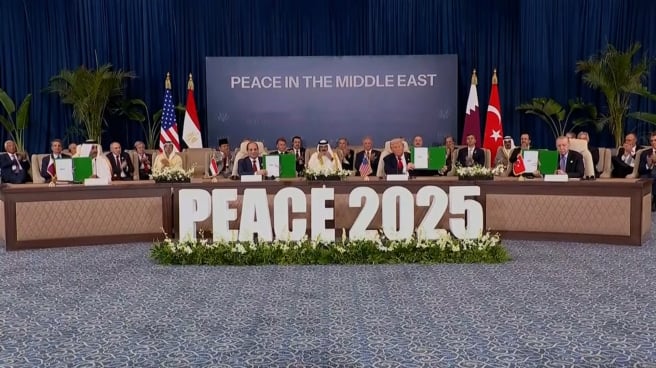 En el caso del conflicto palestino-israelí, detalló Trump, se necesitaron “entre 500 y 3000 años en llegar a este punto”. “Vamos a firmar un documento que detallará muchas normas y reglamentos, entre otras muchas cosas. Es muy completo”, afirmó Trump. A su juicio, el alto el fuego entre Israel y Hamás “está funcionando realmente muy bien”. “Todo el mundo decía que era imposible y va a suceder. Y está sucediendo ante sus propios ojos”.
