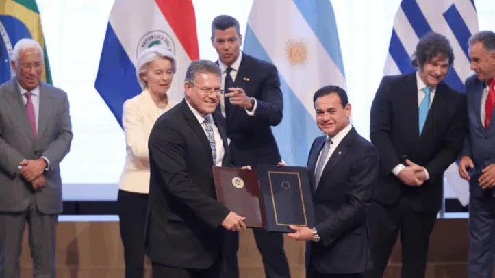 El acuerdo, que ha sido rubricado por el comisario europeo de Comercio, Maroš Šefčovič, y por los ministros de Exteriores del Mercosur, ante la presencia de los principales líderes políticos de ambos bloques, reduce o elimina de forma progresiva los aranceles sobre alrededor del 90% de los intercambios comerciales y abre mercados clave para la industria europea y el sector agroexportador suramericano, con cláusulas de salvaguardia bilaterales para responder a posibles desequilibrios.