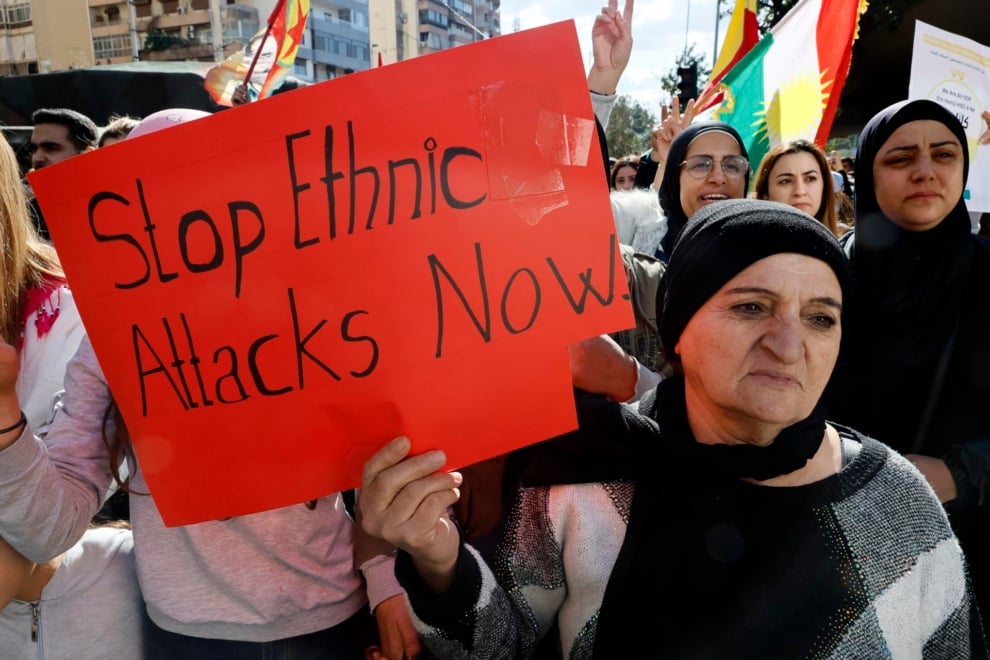 Una manifestante en el Líbano denunciando la limpieza étnica de los kurdos. | Efe