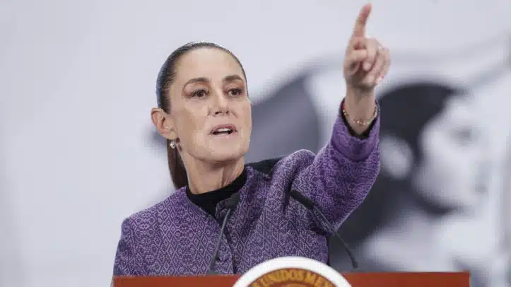 La presidenta de México, Claudia Sheinbaum, durante su conferencia de prensa matutina en el Palacio Nacional de la Ciudad de México.