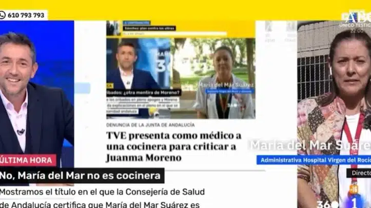María del Mar Suárez -administrativa en un hospital de Sevilla- apareció en pantalla el jueves con bata blanca, distintivo de UGT, chapa de bandera palestina y bolígrafo en el bolsillo. Llevaba tantos símbolos encima que podría decirse que sonaba al andar. Mañaneos 360 contactó con ella porque ese día abordaba la crisis de los cribados del cáncer de mama en Andalucía; y Javier Ruiz la presentó como sanitaria, pese a que la gestión de citas y recepción de pacientes no tenga nada que ver con las labores de diagnóstico, tratamiento, intervención, rehabilitación y prevención.