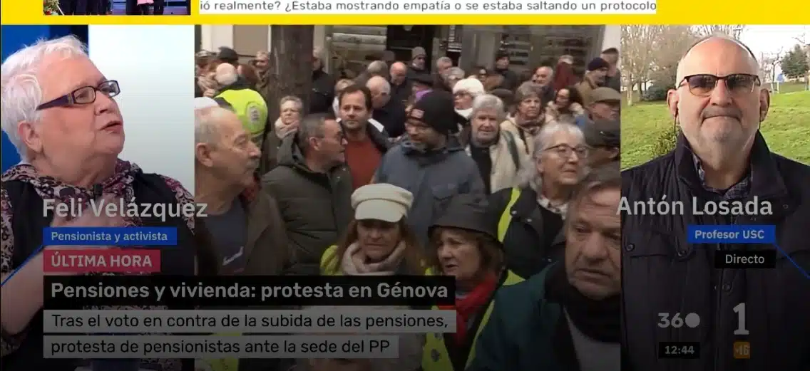 Mientras los chalecos amarillos vociferaban en la calle y el reportero de Mañaneros 360 les ponía el micrófono delante, en el plató de Ruiz estaba Feli Velázquez, el nuevo símbolo, la Sarah Santaolalla de los pensionistas, la nueva Juana de Arco patria, quien el otro día acudió al Congreso de los Diputados para despotricar desde la tribuna contra la derecha por su rechazo al decreto ómnibus.