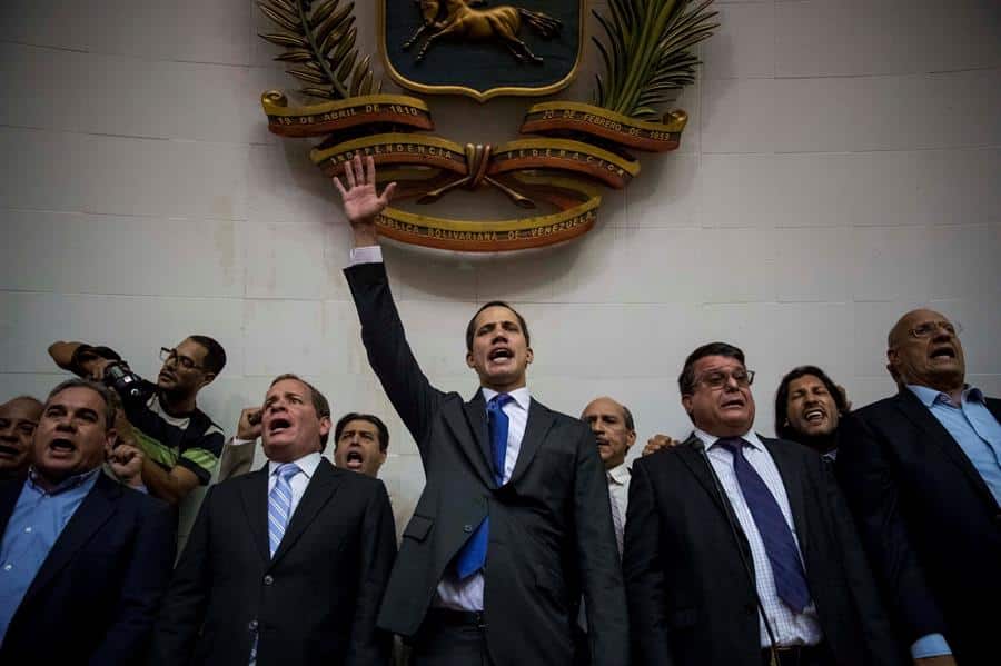 Pero este martes, el autoproclamado "presidente encargado" de Venezuela tomó posesión para su segundo mandato, tras renovar también el cargo de jefe de la Asamblea Nacional al conseguir burlar las medidas de seguridad desplegadas en torno al Parlamento.