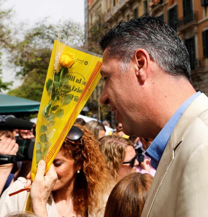 El presidente del PP catalán fue acosado en Badalona mientras repartía rosas en el Día de San Jordi