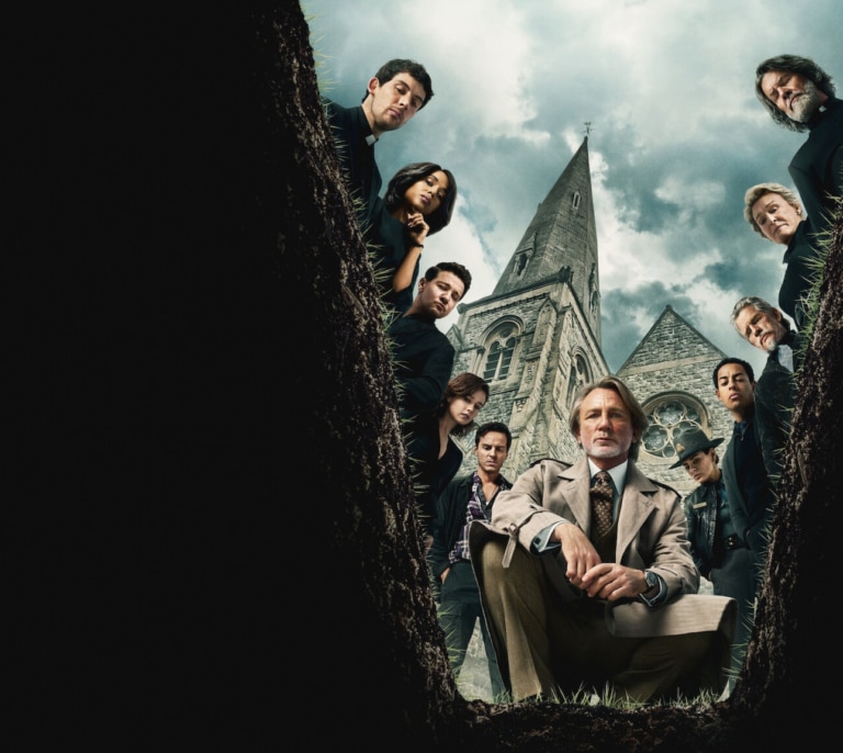 Para este tercer y último caso del excéntrico Benoit Blanc, el cineasta traslada la acción a un pueblo de Nueva York, a una iglesia, cuyo párroco cae fulminado