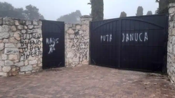 La tapia del cementerio judío de Madrid, en Hoyo de Manzanares, sufrió el pasado miércoles un ataque vandálico con pintadas antisemitas en las que se podía leer 'Holocuento', 'puta Januca', 'juden bueno, juden muerto', 'judío asesino' y una Estrella de David, símbolo del judaísmo, tachada.