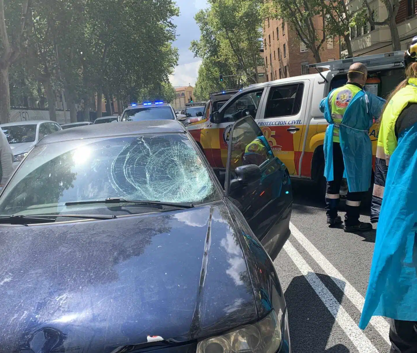 Hasta el lugar ha acudido una ambulancia del Samur-Protección Civil, cuyos sanitarios han intubado, estabilizado y trasladado al Hospital Clínico San Carlos de Madrid, donde ha ingresado en estado grave con un traumatismo craneoencefálico severo. El conductor ha sido atendido por un psicólogo del Samur por los nervios que tenía. Investiga el siniestro la Policía Municipal de Madrid y ha colaborado la Guardia Civil.